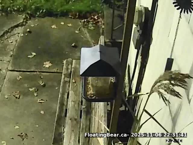 This site is running on a Raspberry Pi 3 Model A Plus Rev 1.0 which pulls images from a Wyze Cam located in my front window. It's just a toy I've been playing with. If you are interested in knowing more, please feel to contact me andrew@floatingbear.ca