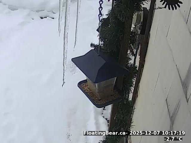 This site is running on a Raspberry Pi 3 Model A Plus Rev 1.0 which pulls images from a Wyze Cam located in my front window. It's just a toy I've been playing with. If you are interested in knowing more, please feel to contact me andrew@floatingbear.ca